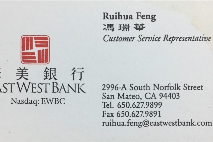 華美銀行 EAST WEST BANK Nasdaq: EWBC Ruihua Feng 馮瑞華 Customer Service Representative 2996-A South Norfolk Street San Mateo, CA 94403 Tel. 650.627.9899 Fax 650.627.9891 ruihua.feng@eastwestbank.com