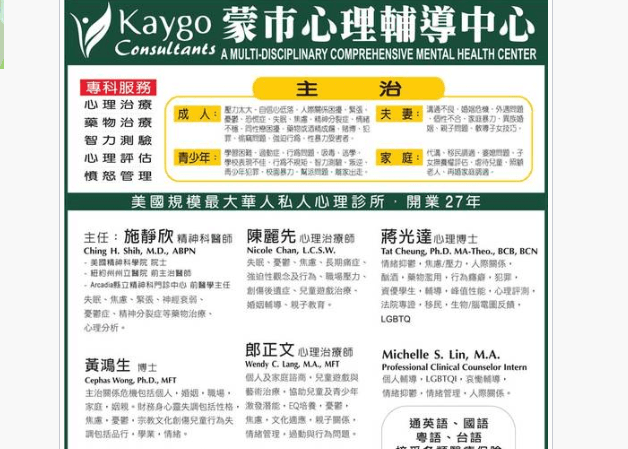 我们提供全面性的心理服务,所有服务都由具有加州执照并富有经验的心理专家担任。