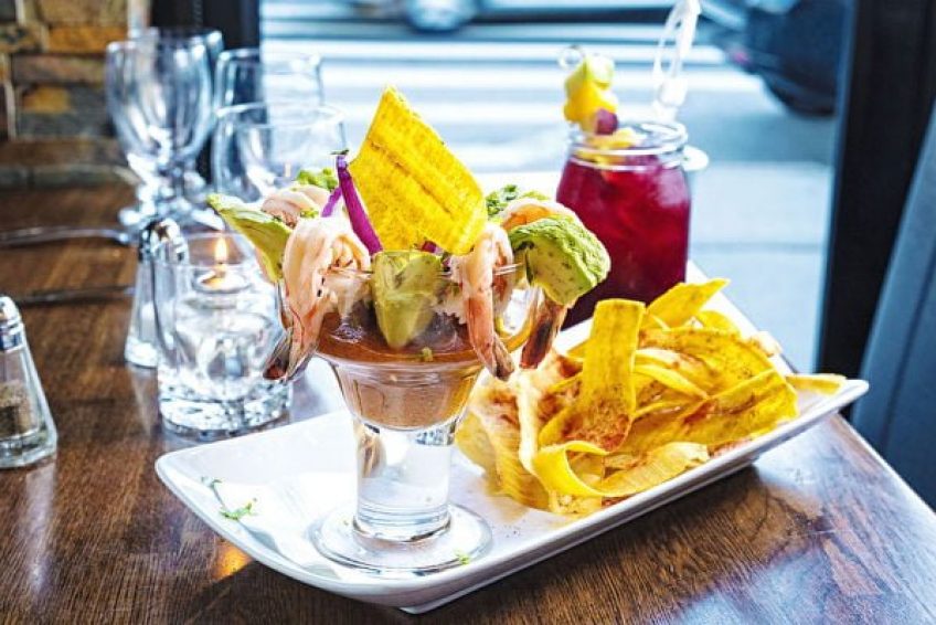 另一道不为中国人熟知的应是Ceviche Mixto( $16.95 ),中文大致可译为柠汁腌鱼生。中美洲多国都有Ceviche,各国有不同版本。这道菜手法独出一格,采用青柠汁和橄榄油将海鲜腌熟。腌鱼生无油、热量低,也能突出食材的原汁原味。虽然看似简单,但用料要均衡,才能衬托出这道菜层次丰富的口感。