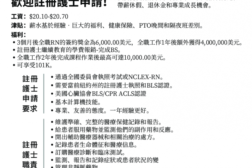 歡迎註冊護士申請!我們提供有競爭力的薪水、全面的福利待遇、