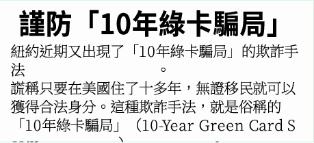 紐約近期又出現了「10年綠卡騙局」的欺詐手法。