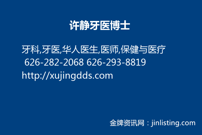 许静牙医博士毕业于加州大学旧金山分校(UCSF)牙医学院,拥有二十多年丰富临床经验。诊所提供根管治疗(RCT),智齿(阻生牙)拔除,牙桥,牙冠,牙齿美容,牙周病治疗,人工植牙,隐形牙齿矫正(Invisalign),牙齿矫正(Fastbraces)等多项牙科服务。各种治疗均有优惠。