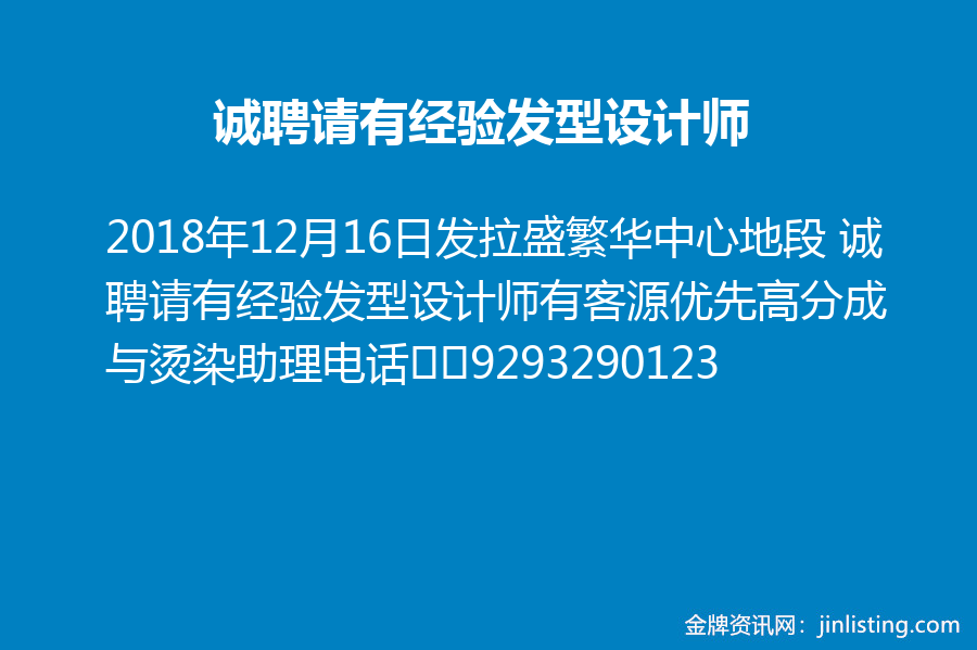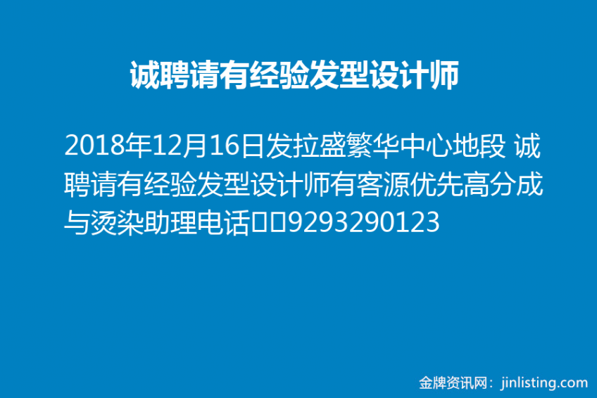 发拉盛繁华中心地段 诚聘请有经验发型设计师有客源优先高分成与烫染助理电话☎️9293290123