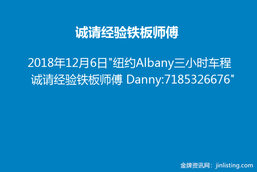 诚请经验铁板师傅 “纽约Albany三小时车程 诚请经验铁板师傅 Danny:7185326676”