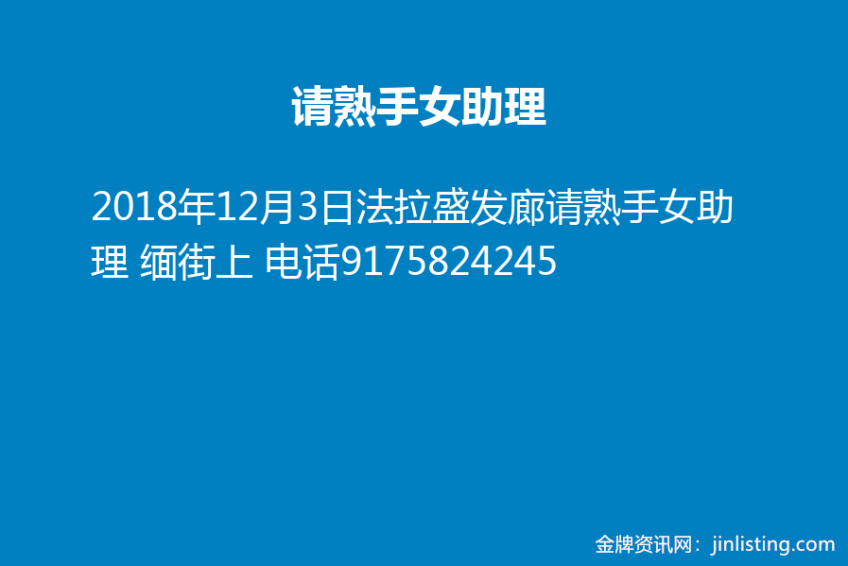 法拉盛发廊请熟手女助理 缅街上 电话9175824245