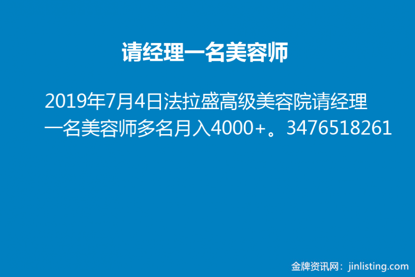 法拉盛高级美容院请经理一名美容师多名月入4000+。3476518261