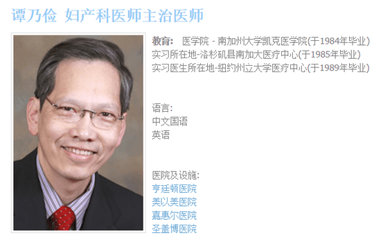 1984年毕业于美国南加州大学Keck医学院,拥有将近30年的行医经验。 曾实习于南加州大学Keck医学院,1985年毕业;1989年在SUNY Health Science Center完成住院医师训练。 拥有加利福尼亚州医疗协会颁发的妇产科专门认证 。 现在为美国医疗协会登记在加州Pasadena的医师。 精通中文丶英语丶西班牙语等国语言与病人沟通。