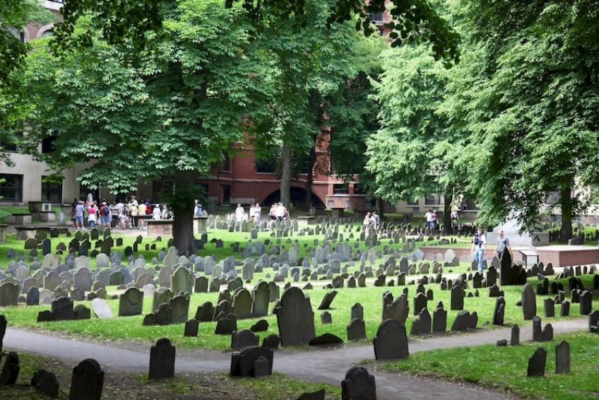 成立于1660年的谷仓墓地坐落在Tremont大街,是许多杰出革命战争时期爱国者的安息地,其中包括三个独立宣言签署人, Paul Revere,和五个波士顿大屠杀遇难者。墓地临近公园街教堂,在萨福克大学法学院对面。公墓的埃及复兴建筑式大门和栅栏由波士顿建筑师Isaiah Rogers设计,他同时也在新港的Touro墓地设计了个相同的大门。