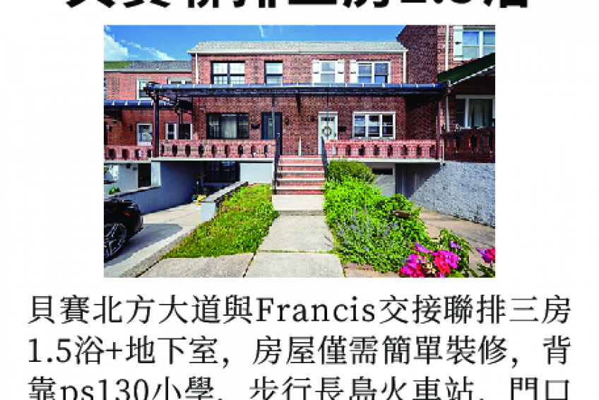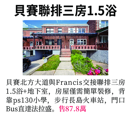 車站,門口bus直達法拉盛。售87.8萬