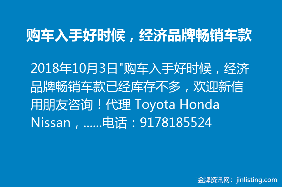 “购车入手好时候,经济品牌畅销车款已经库存不多,欢迎新信用朋友咨询!