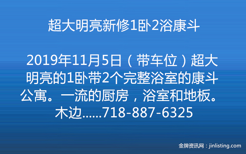 “**超大明亮新修1卧2浴康斗(带车位)** 超大明亮的1卧带2个完整浴室的康斗公寓。一流的厨房,浴室和地板。 木边Woodside的优越地理位置,距离巴士站1/2街区, 步行7分钟即可到达Woodside 61st St Express站&LIRR站。 健身房,室内车库,休息室和全套设施,24/7守门员。 出门就可以享受室外带游乐场和运动场的美丽公园。 精心翻新,配有洗衣机/干衣机和洗碗机。 近许多超市,杂货熟食店和公园。包水,可养宠物,视情况而定。 售$59万8带车位! 还有多套全新Rego Park,法拉盛,Elmhurst等处的康斗, 欢迎咨询! 预约看房,请联系:美房置业纽约地产 Henry He何亨利团队 电话留小姐:718-887-6325 或微信何先生:16463388518”