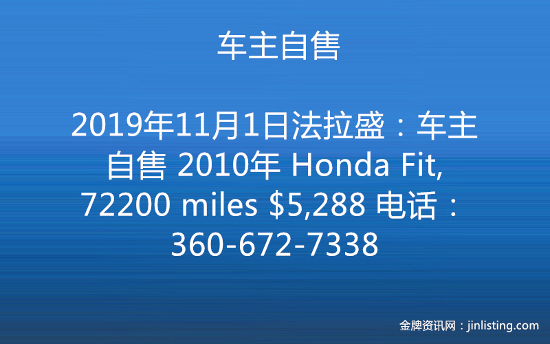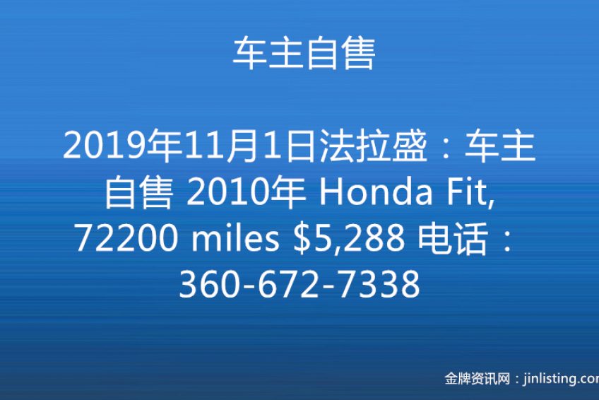 法拉盛:车主自售 2010年 Honda Fit, 72200 miles $5,288 电话:360-672-7338