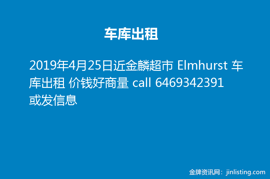 车库出租 近金麟超市 Elmhurst 车库出租 价钱好商量 call 6469342391 或发信息