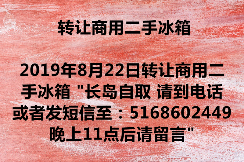 转让商用二手冰箱 “长岛自取 请到电话或者发短信至:5168602449 晚上11点后请留言”