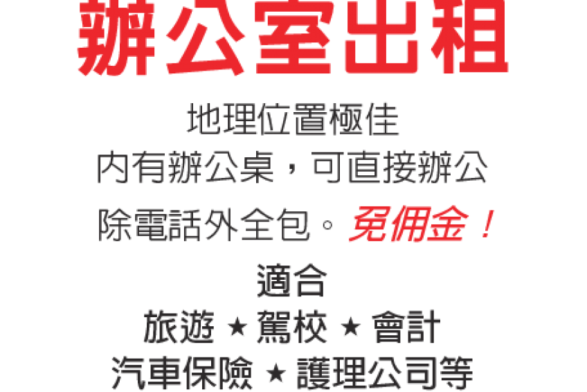 法拉盛緬街地鐵口辦公室出租,地理位置極佳,內有辦公桌,可直接辦公,除電話外全包。適合:旅遊公司,駕校,會計公司,汽車保險,護理公司等,免佣金!