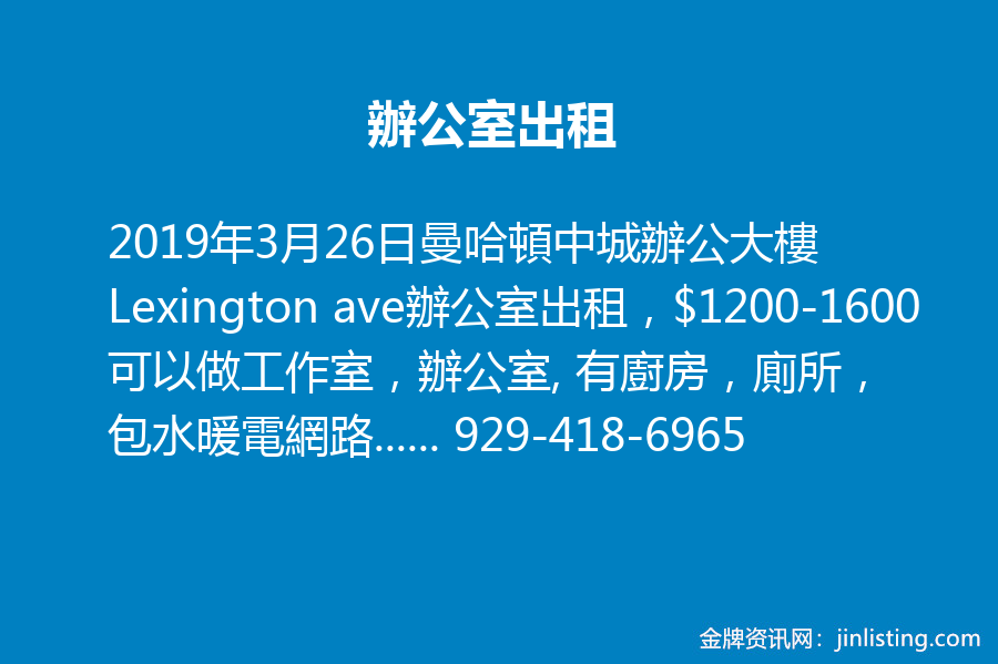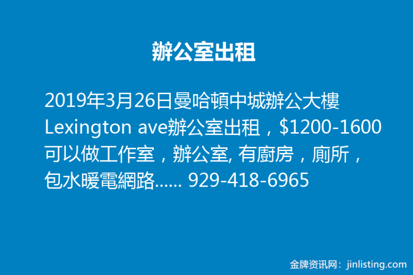 曼哈頓中城辦公大樓Lexington ave辦公室出租,$1200-1600可以做工作室,辦公室, 有廚房,廁所,包水暖電網路 , 歡迎紐約針灸師,執照按摩師, 各類醫生…等承租,有興趣者可電話諮詢 929-418-6965