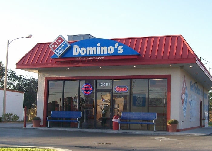 达美乐比萨饼于1960年成立,当时汤姆·莫纳根与其他詹姆士买下了密歇根州伊普希兰堤市的比萨饼店“Dominick’s Pizza”,附了75美元的订金并借了500元付余“多米尼克比萨饼”(多米尼加比萨饼)1968年,“多米尼加披萨饼”一场大火烧掉了店铺,虽然遭遇许多艰难,包括1975年与多米诺食品公司的商标诉讼,公司仍持续成长,在1978年开了第200家分店。