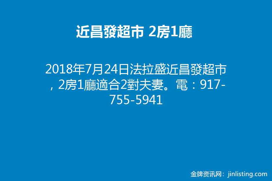 法拉盛近昌發超市,2房1廳適合2對夫妻。電:917-755-5941