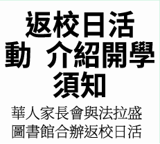 華人家長會與法拉盛圖書館合辦返校日活動。