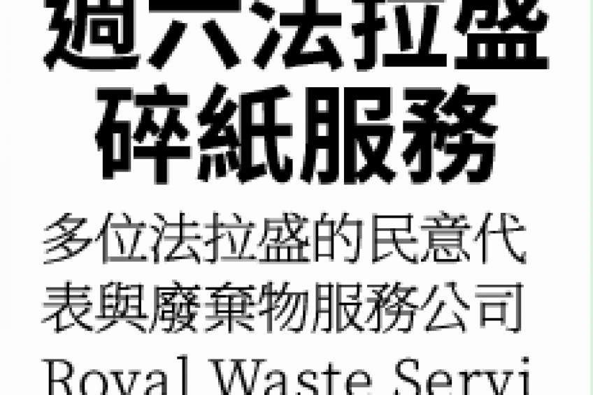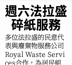 多位法拉盛的民意代表與廢棄物服務公司Royal Waste Services合作,為居民組織碎紙服務。
