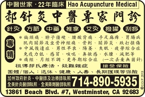 醫院(診所)名稱:Hao Acupuncture & Oriental Medicine a professional corporation