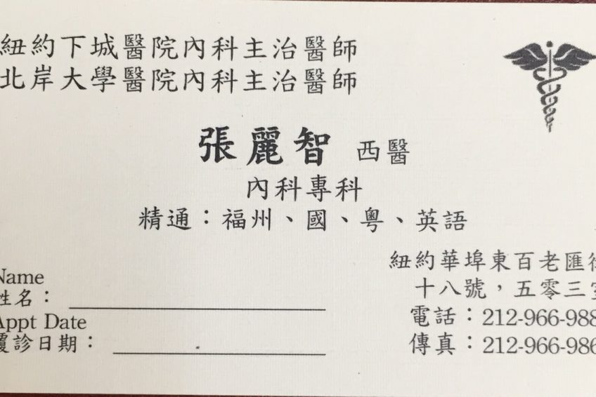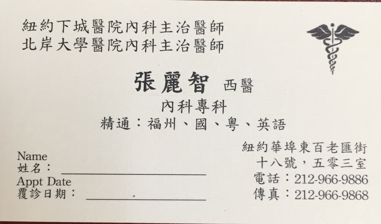 北岸大學醫院內科主治醫師212.966.9886 紐約華埠東百老匯街十入號