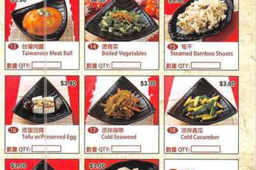 店內之菜色除其原來獨到之美味排骨丶雞腿面飯丶春捲丶筍乾及各式開味小菜外,將於期內另推出牛腩飯丶咖哩飯及炸醬麵,以供顧客選擇品嚐。營業時間是中午1時至2時30分,下午5時30分至晚上9時,週三休