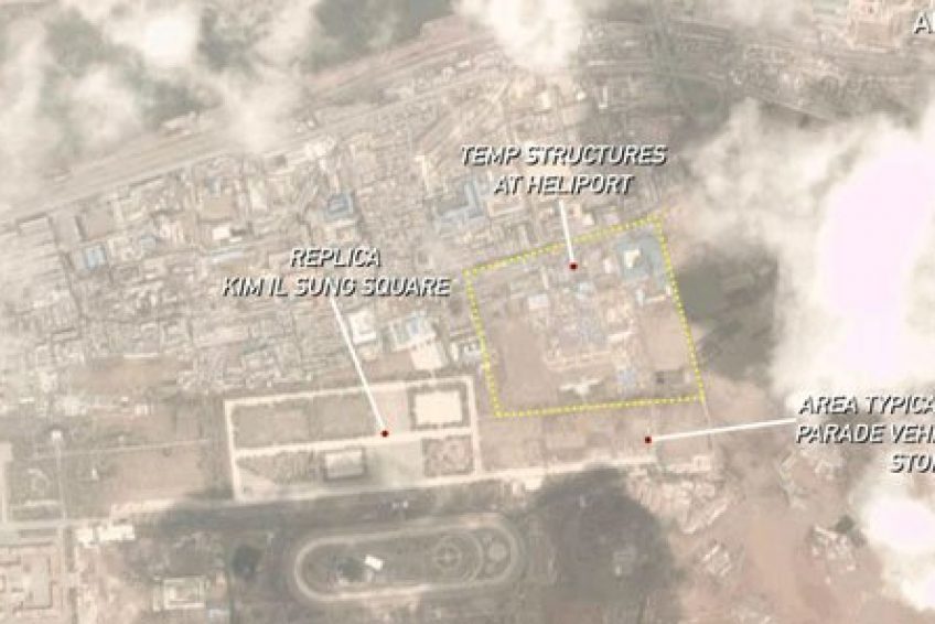 多家媒体援引英国《太阳报》27日的报导说,据行星实验室(Planet Labs)的最新卫星照显示,4月18日起,朝鲜在位于平壤东边的“美林阅兵训练场”内,开始建造通常用于阅兵式的临时建筑,成排的建筑能容纳来参加阅兵式的士兵。