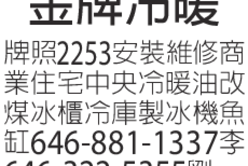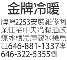 商業住宅中央冷暖油改煤冰櫃冷庫製冰機魚缸646-881-1337李/646-322-5355劉