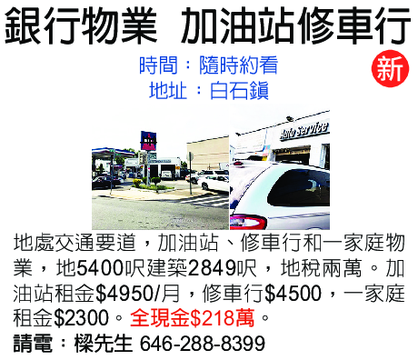 銀行物業 加油站修車行 646-288-8399