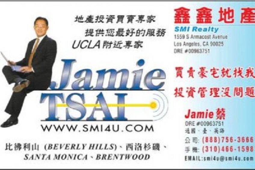 选择适当的地产经纪人是地产投资是否成功的关键。鑫鑫地产投资(SMI REALTY)Jamie Tsai 通国语,台语和英语,能为您做最好的服务。