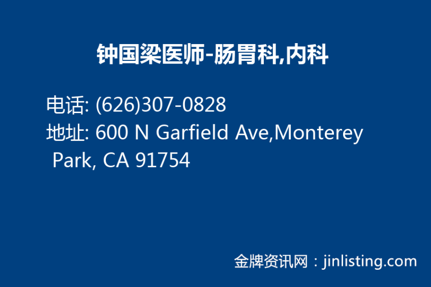 钟国梁医生是加利福尼亚(California) 消化内科执照医师, 他在Albert Einstein 取得医学学位。 曾在Beth Israel Medical Center完成住院医训练。并在UCLA Medical Center完成消化内科专科训练。他所在的医疗机构是Garfield Medical Center