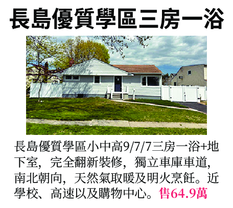 長島優質學區小中高9/7/7三房一浴+地下室,房屋完全翻新裝修,