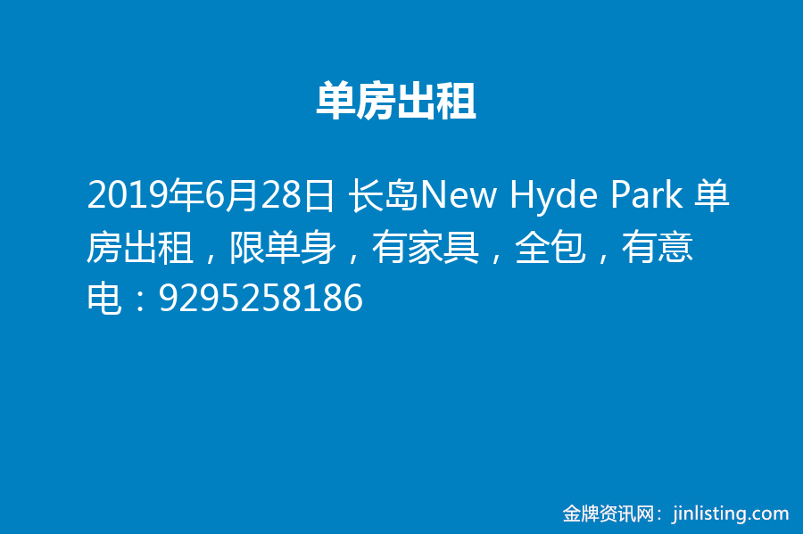长岛New Hyde Park 单房出租,限单身,有家具,全包,有意电:9295258186