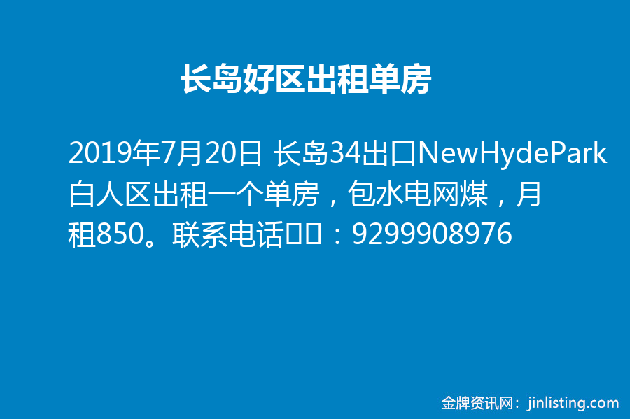 长岛好区出租单房 长岛34出口NewHydePark白人区出租一个单房,包水电网煤,月租850。联系电话☎️:9299908976