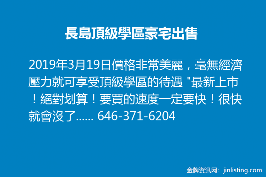 Syosset長島頂級學區豪宅出售 – 價格非常美麗,毫無經濟壓力就可享受頂級學區的待遇 “最新上市!絕對划算!要買的速度一定要快!很快就會沒了。請馬上聯繫Kiki 蔡小姐 646-371-6204 想要讓孩子享用到全美/全紐約都有排名的學區卻苦惱房價太貴?往這邊看來!一個絕好的機會讓你毫無經濟壓力給孩子提供最好的學習環境。 38 Edna Dr, Syosset 長島頂級學區超大一家庭 5 個超大臥室,2 大客廳,2 廚房,3 衛浴,2 試衣間,完成地下室。全新屋頂/車庫/地下室,室內裝潢選用高級材料。土地:70X150,屋子面積:3620 尺,地稅:$24,942/年(還可申請減免)”