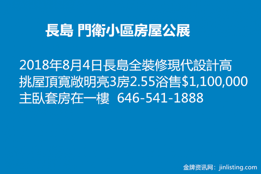 時間:8/05: 週日公展: 1:00-2:30pm 其他時間預約 地址:22 Yale Dr, Manhasset, NY 11030 全裝修, 現代設計高挑屋頂,寬敞明亮。 3房2.55 浴。 內部面積3063呎。 主臥套房在一樓。 小區游泳池網球場。 24 小時門衛。 Herricks 學區。 售: $1,100,000 KW Gold Coast 張小姐 646-541-1888