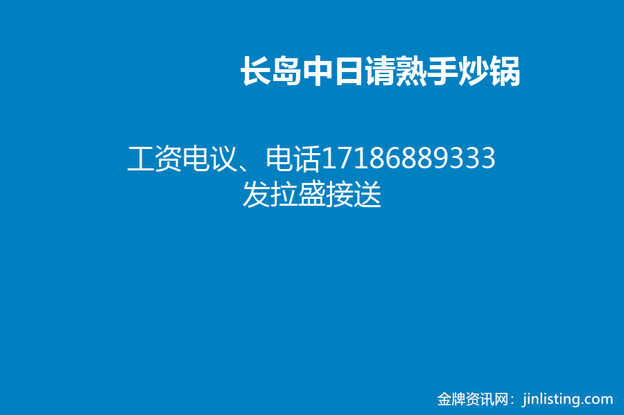 长岛中日请熟手炒锅、发拉盛接送 工资电议、电话17186889333