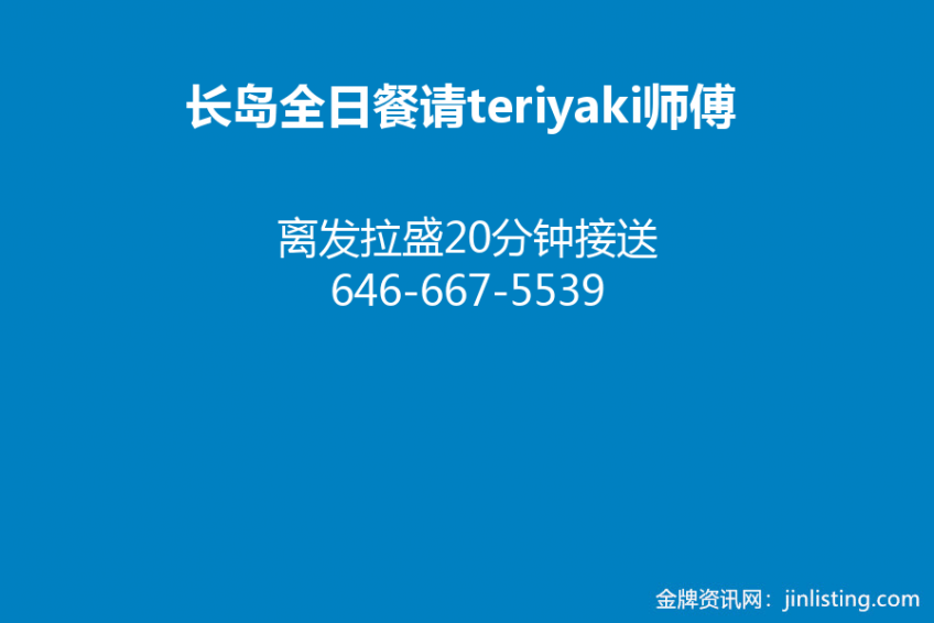长岛全日餐请teriyaki师傅离发拉盛20分钟接送 646-667-5539
