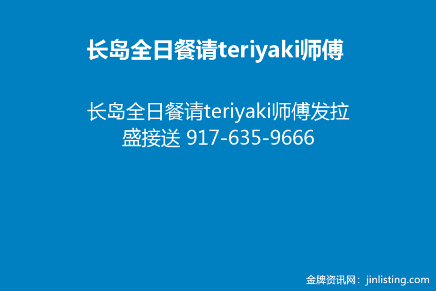 长岛全日餐请teriyaki师傅发拉盛接送 917-635-9666