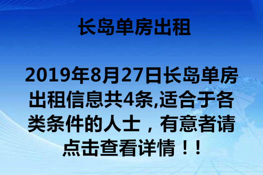 1.长岛35出口两单房出租 长岛35出口两个单房出租,开车离Hofstra,LIU,NYIT 15分钟,Adelphi 10分钟,New York College of Traditional Chinese Medicine 5分钟,近新飞龙超市和LIRR Mineola火车站,不吸烟不养宠物少炊,适合长岛留学生和上班族,有意电:5168533822