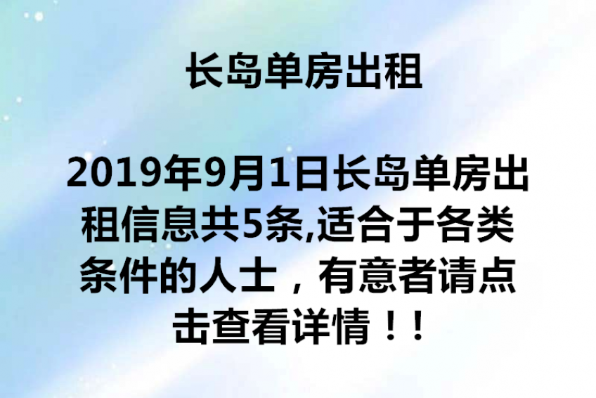 3.长岛41出口 “[Post New]2019/8/30 文章主题: 长岛好学区出租41 出口 ***** [Up] 游客 长岛bethpage 白区 安静 有一house分租单房和套房 好学区 屋内人员简单一家三口 想租单身女性 母子 母女 姐妹 留学生 包水电 易趴车 联系电话6468269660”
