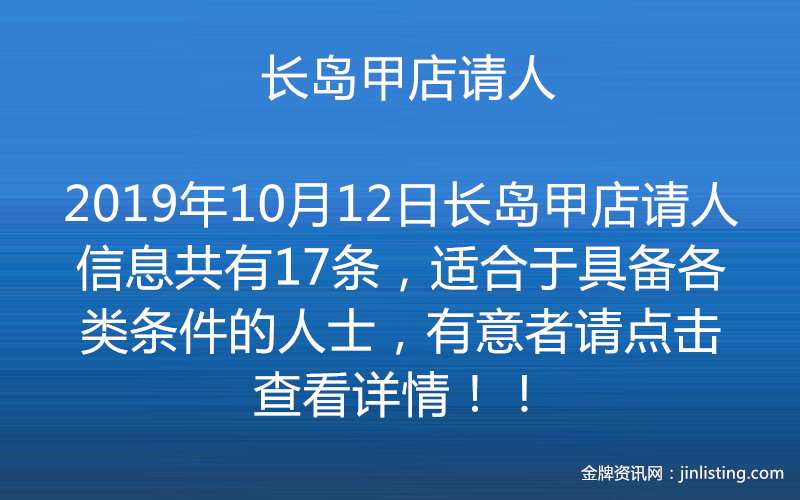 1. 长岛49出口招小工 白人区 小费好 有意者联系3472384519