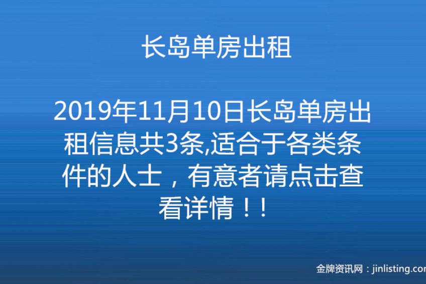 3. “长岛62出口2间单房出租, 位置97号公路附近 近石溪大学 附近各种商店 环境安静优美 有意者请电或发信息至 917-822-3578.”