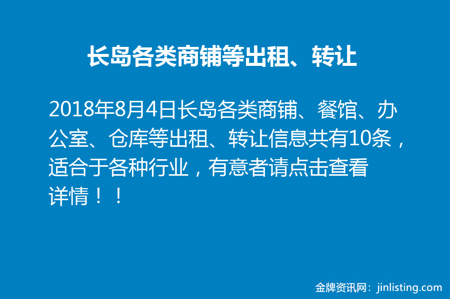 4、长岛甲店❤️接手即赚 “长岛南边,31出口老店。生意稳。大1100尺。七台,5池,两个房间。房租2625。 接手即赚。退休,售1万9。 电 718-570-1748”