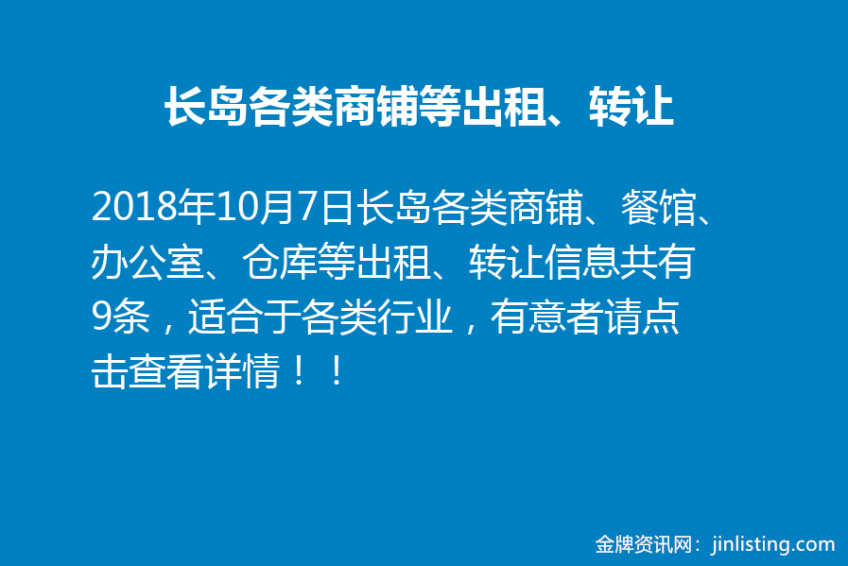 长岛各类商铺、餐馆、办公室、仓库等出租、转让
