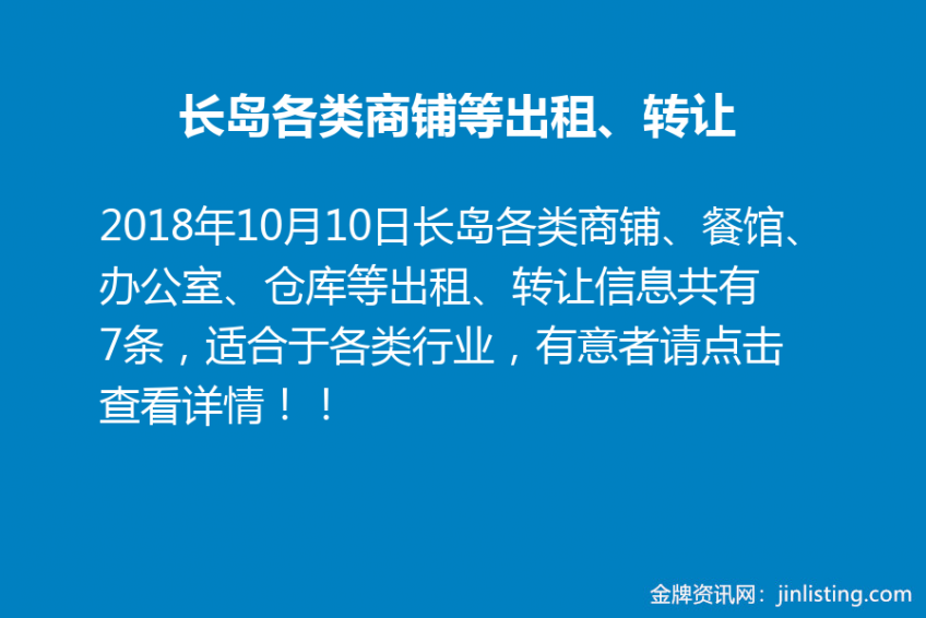 长岛各类商铺、餐馆、办公室、仓库等出租、转让