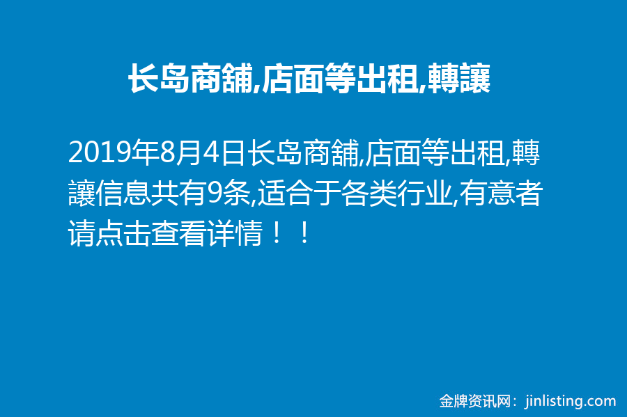 长岛富人区按摩店无任何不良记录,离法拉盛一个小时车程位置好临大街,无需广告生意稳定,装修大气典雅,四个做工房间三张做脚沙发 一间员工休息室里面带有一个小洗澡间(只是员工自己使用)具备一切住店条件,房东是中国人很好沟通,现转让费(四万八千元)物有所值,自己真心想开店做生意的请联系,嫌远嫌贵和没事打听的勿扰,联系电话631-816-1321