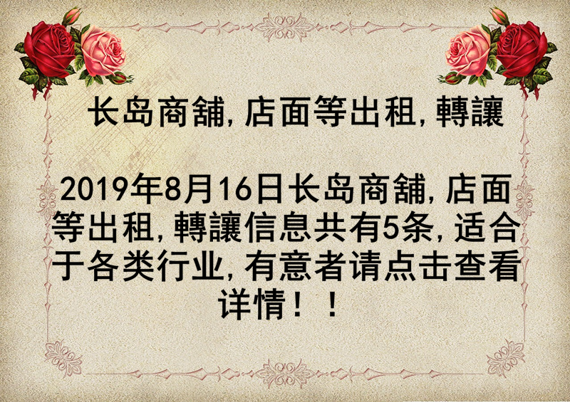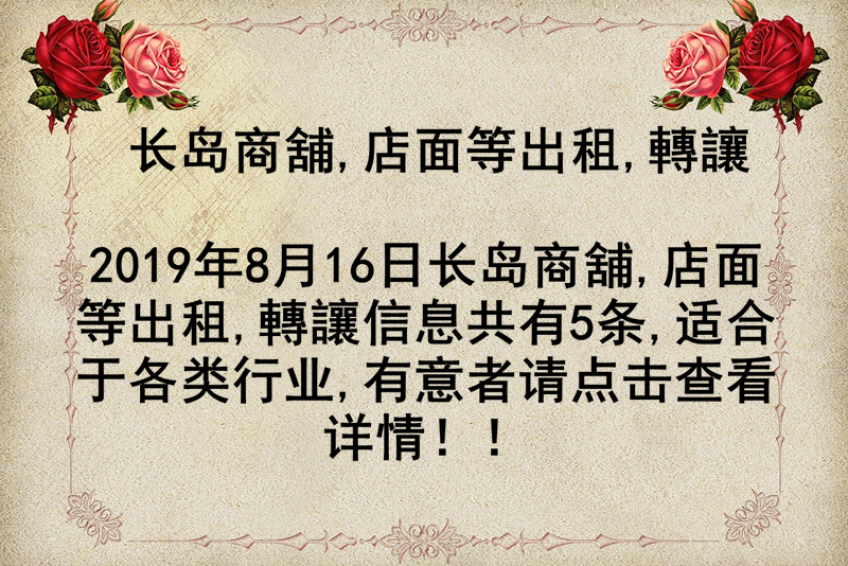 长岛商舖,店面等出租,轉讓