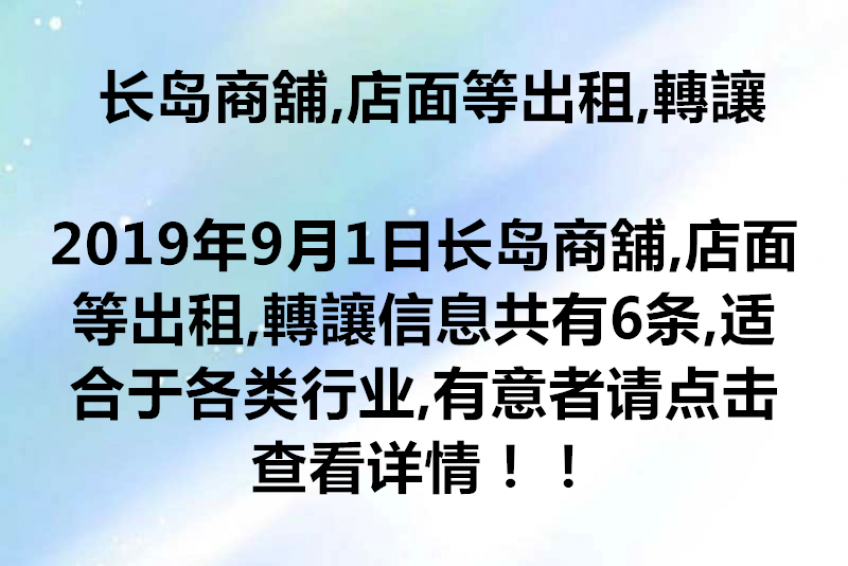 长岛甲店转让 长岛好区 3脚池 4手台 1拔毛房 月租$2000. 地处商业街 有免费停车场 现低价转让 投资少回本快 欢迎看店议价 ☎:917-723-7881 非诚勿扰。